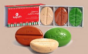 Sabonetes vegetais formulados com extrato de café e manteiga de karité, perfeitos para quem gosta de fragrâncias suaves. Disponível por R$ 24,90. |