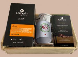 Inclui grão especial (Moído Chocolate), chocolate meio amargo com crocante caramelizado de café, caneca personalizada, coador de pano com suporte e cesta presente em madeira. Uma experiência completa que combina aroma, textura e tradição. Pode ser encontrado por R$ 184,50. |